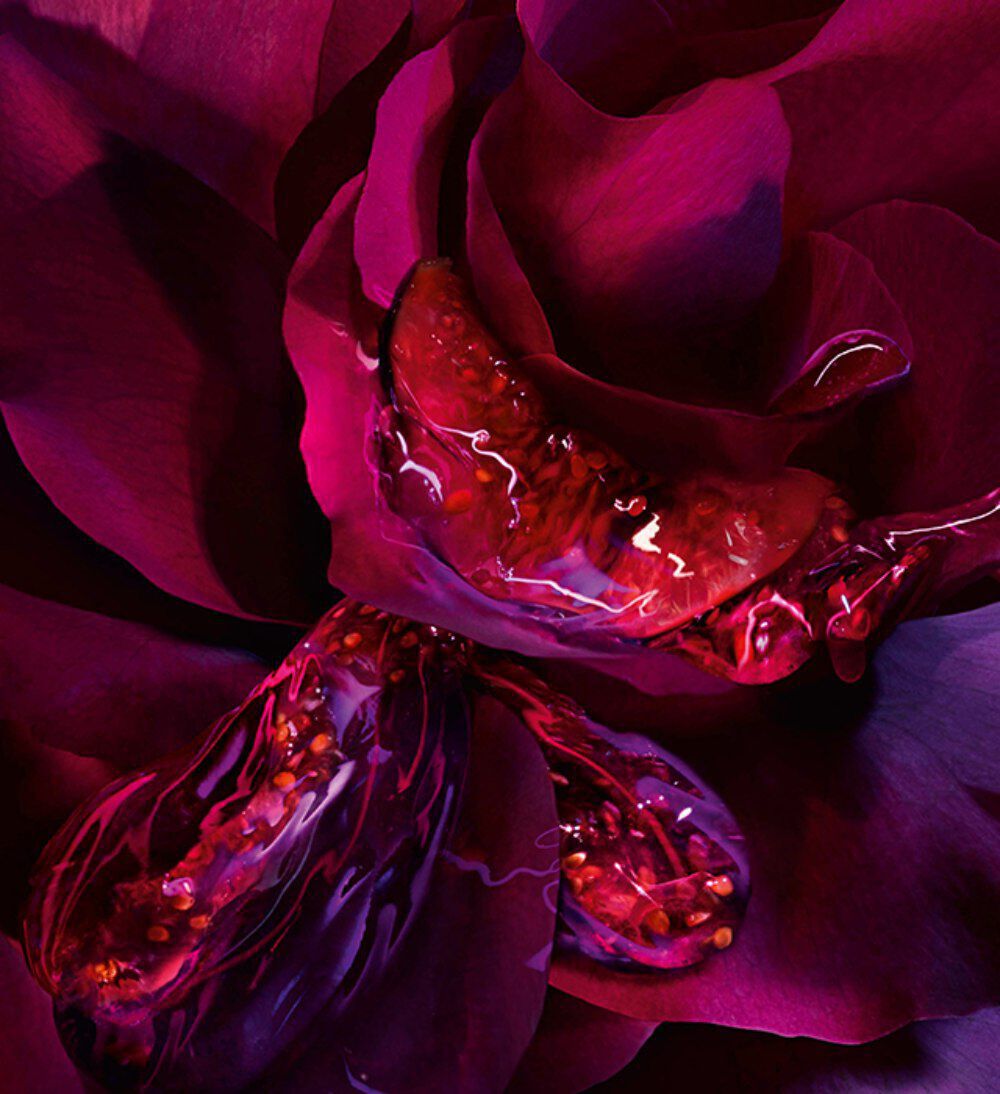 في أمسيات الصيف الأكثر حرارة، تستسلم الوردة لجاذبية التين الفاتنة،