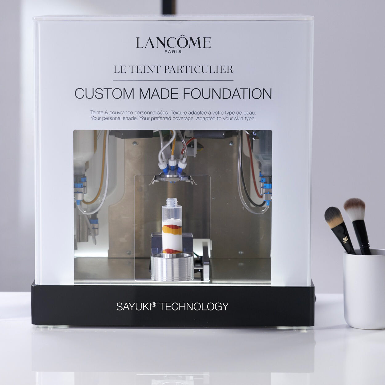 Every Le Teint Particulier foundation formula is customized to your precise skin tone measurements. We are using Lancome's advanced alogrithm that analyzes and then matches your exact skin tone for outstanding shade accuracy.